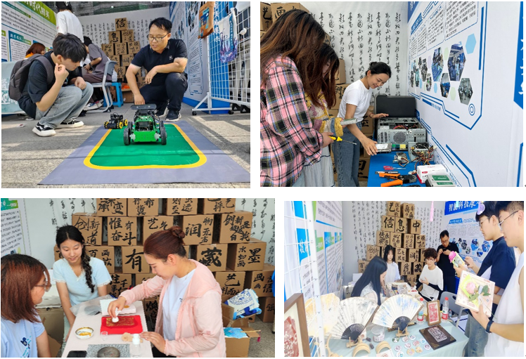 在技能展示活动中,郑州校区与开封校区同步开展了多样化的数智技术与传统文化融合活动,设立了以“智能科技展风华•薪火非遗传匠心”为主题的展区。