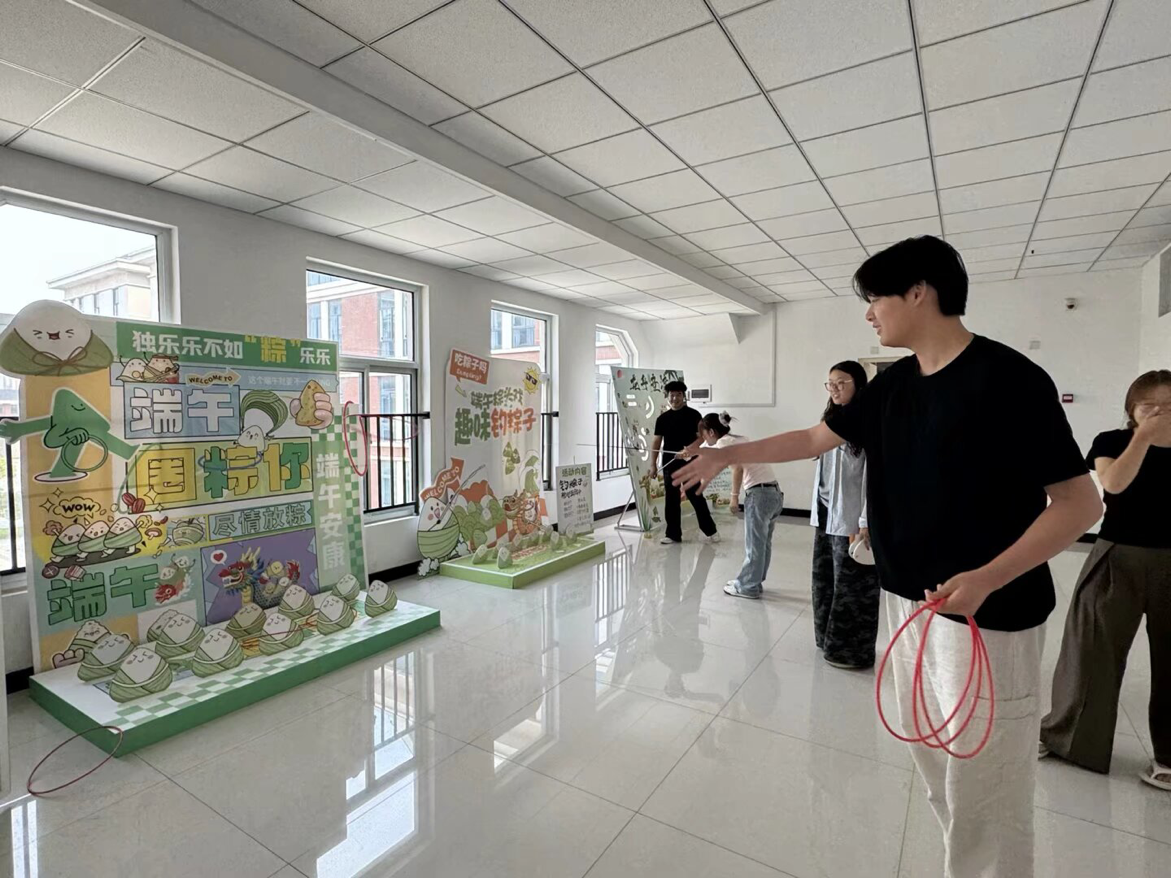 “这是我们第一次参加这种端午节趣味活动,我最喜欢龙舟竞渡这个游戏,非常考验眼手脑协调能力,又是合作类型的,既好玩也特别有意义。”参加活动的同学笑着说道。