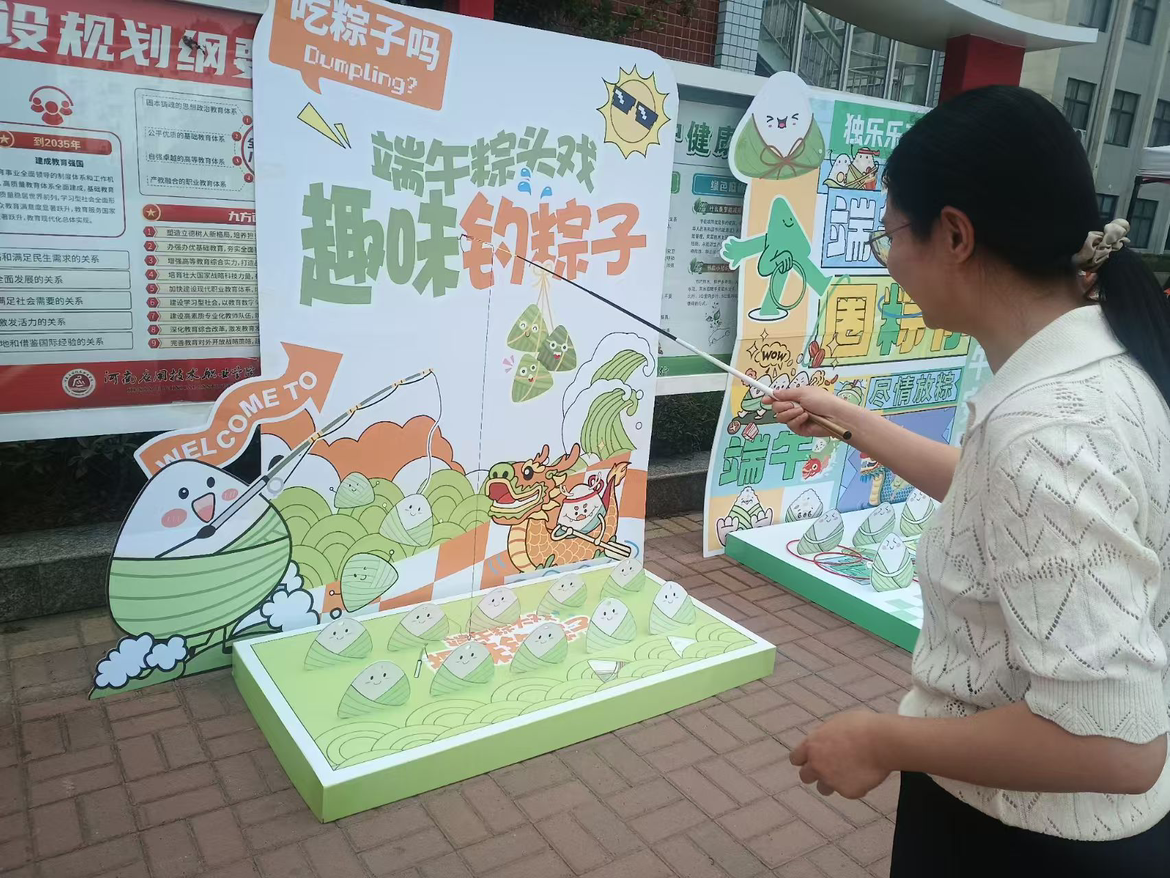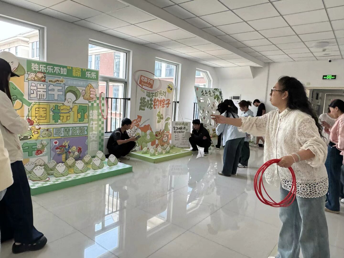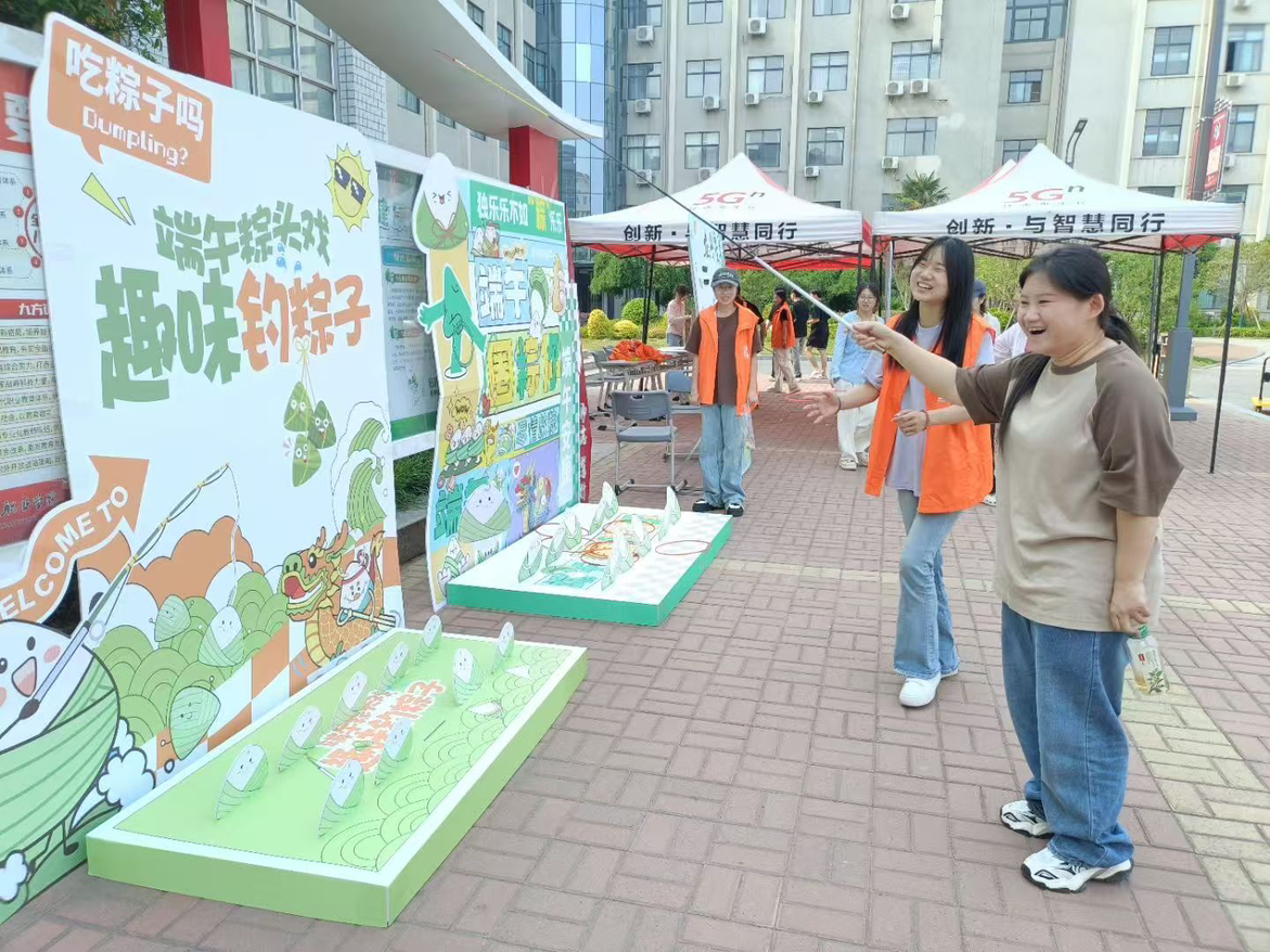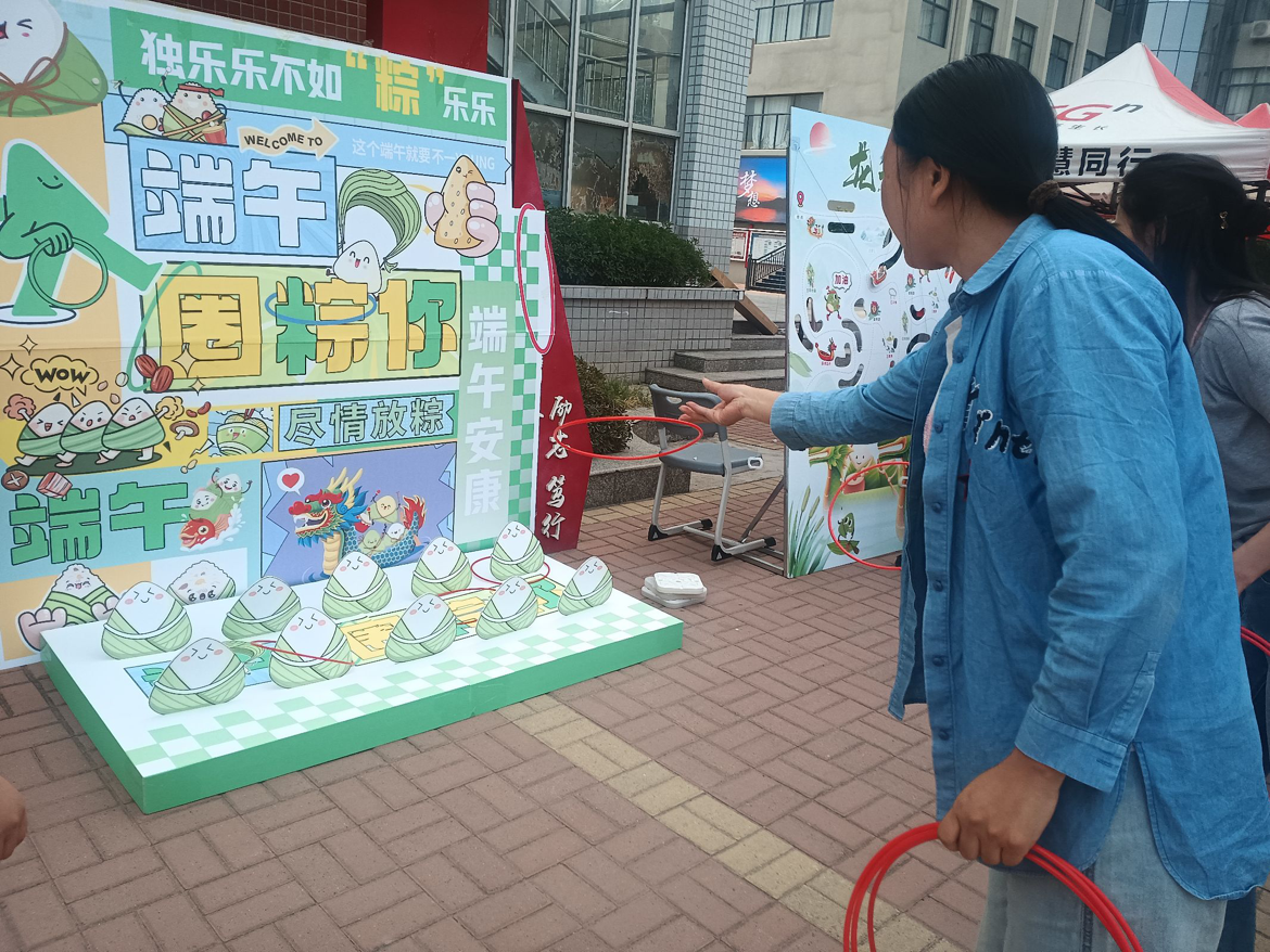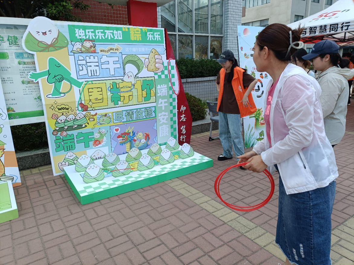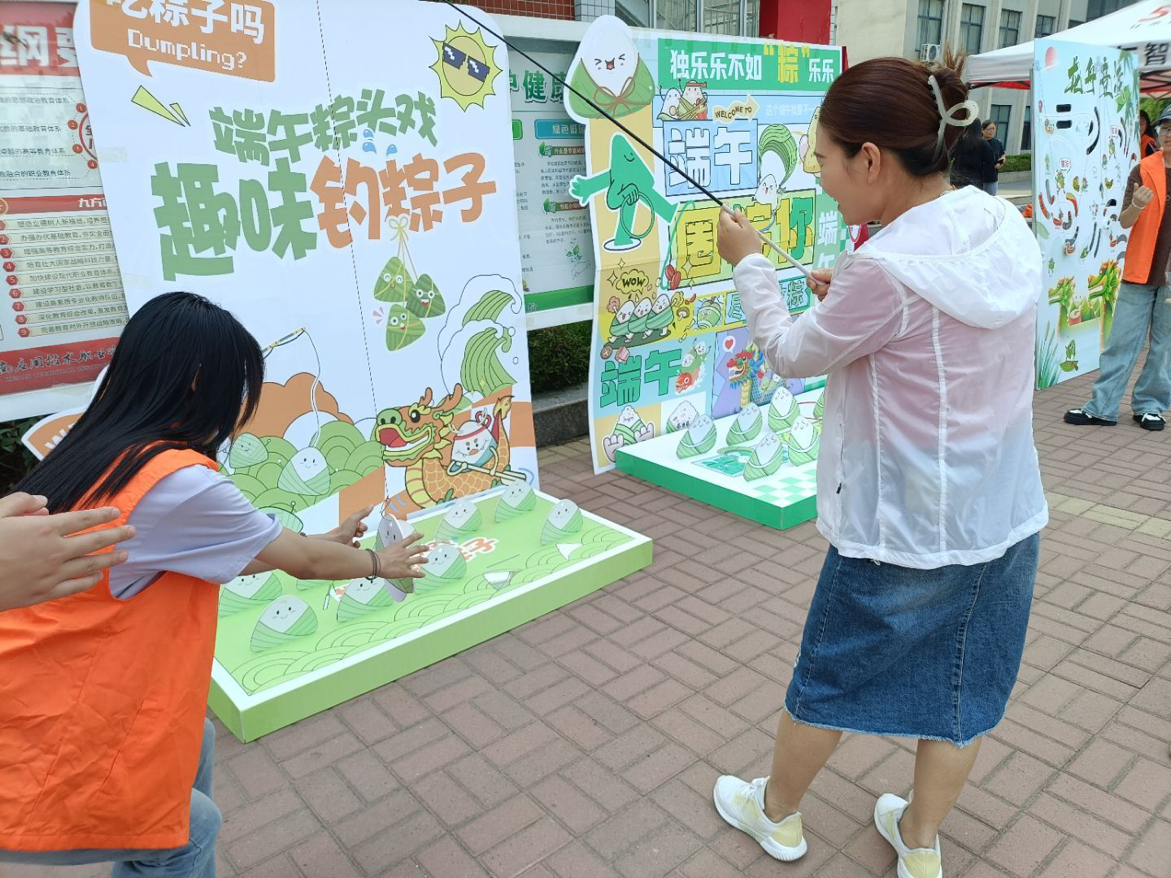 活动搭建了钓粽大作战、套粽子、龙舟竞渡趣味小游戏,邀请路过的师生前来体验。参与活动时,师生们你追我赶、奋勇争先,大家凭借出色的手眼协调力,赢得现场阵阵欢呼和呐喊声,现场氛围热烈活跃。