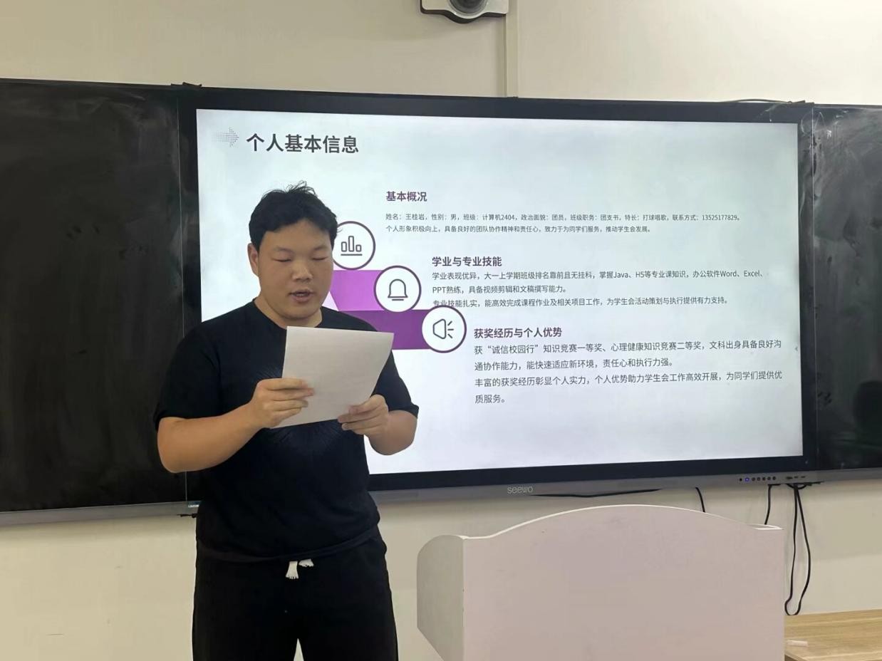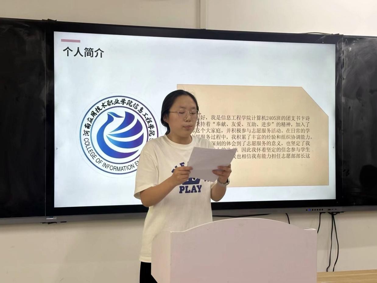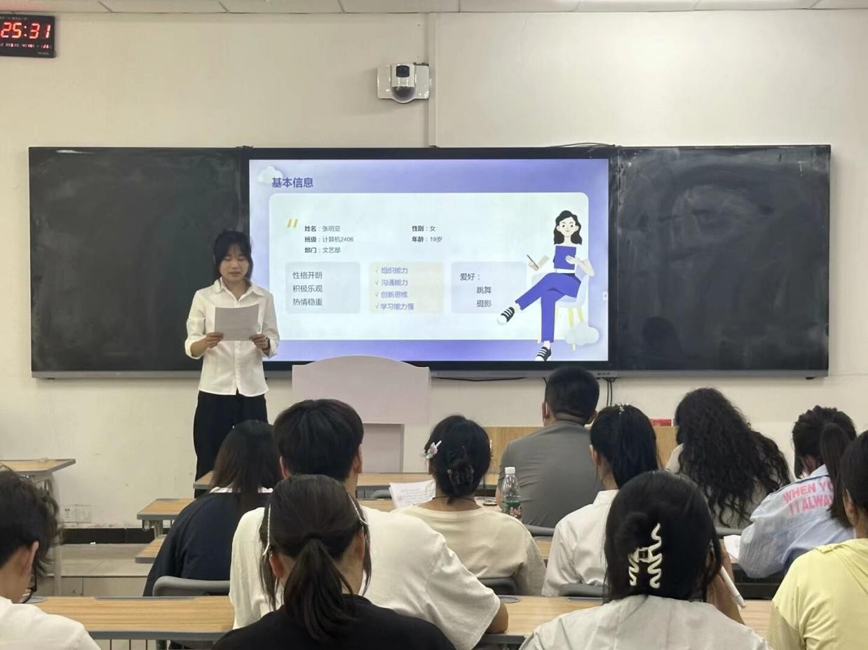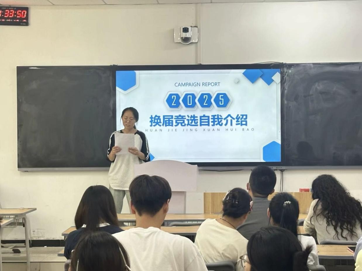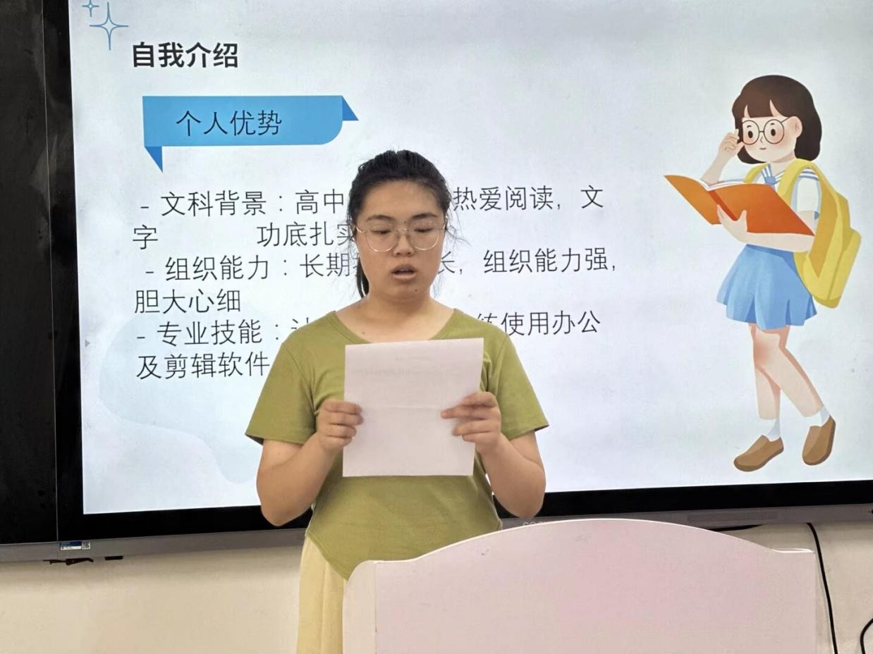 随后,参与竞选的同学们依次上台发表竞选演讲。她们自信满满,结合自身优势,阐述了对竞选岗位的理解和工作规划,表达了为公司和同学们服务的决心。
