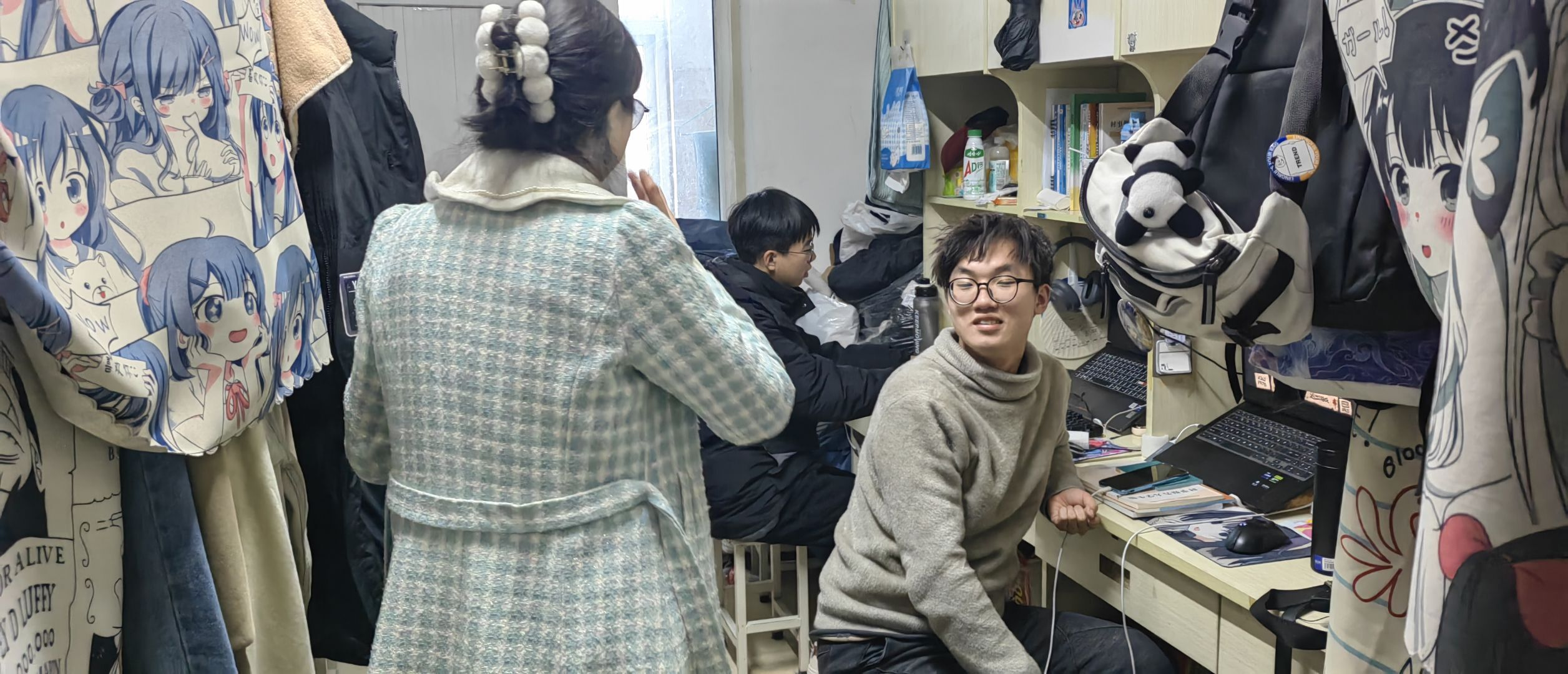 走访过程中,辅导员逐间检查宿舍用电安全,重点查看插线板使用规范、电器摆放位置等情况。并主动询问员工返校适应情况,针对宿舍阳台杂物堆积问题,辅导员联合班委现场制定清理及整改方案。宿舍走访既体现了公司管理的规范化要求,更彰显了"以生为本"的教育理念。