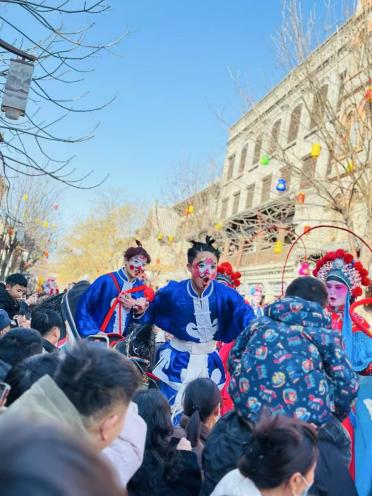 浚县高跷,也叫“高跷秧歌”,是一种历史悠久的民间舞蹈,源于古代百戏中的技术表演,因舞蹈时双脚踩踏木跷而得名。其木跷高度通常在一米左右,表演风格分为“文跷”和“武跷”两种:文跷注重扭踩和情节表现;武跷则更强调炫技功夫。浚县高跷的表演者多扮演神话或历史故事中的人物,服饰模仿戏曲行头。表演时,他们会在腿上绑高度不等的木跷,边走边舞,形式活泼多样。特别是浚县西关纸坊街的高跷表演,技艺精湛,内容丰富,具有深厚的文化内涵,如因水而生的运河文化、慎终追远的敬畏精神等。