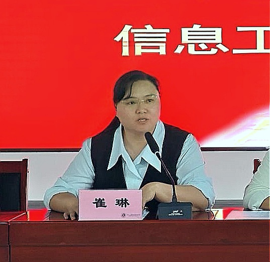 崔琳作动员讲话,通过对往届毕业生精彩的岗位实习经历的分享,鼓励同学们珍惜实习机会,勇敢面对挑战,为未来的职业发展打下坚实的基础。她强调,实习是公司教学的重要一环,同学们要认清实习期间的双重角色,端正态度、遵守规章制度、服从单位管理,在实习岗位上练就过硬本领。